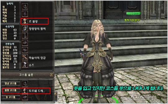胴コスチュームはキャラクター情報創意の下部分に位したコスチュームスロットに位している部分としてゲーム内にコスチュームの役目以外の他の役目は全然できないです.