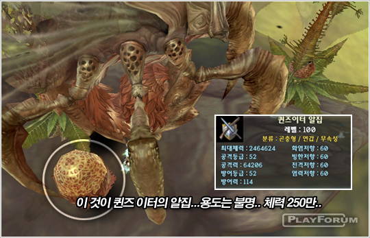 レイドモンスタークィーンズアントは上体と下体そして卵部分で分かれていて,それぞれの部分の体力が違うが基本体力が 120万が過ぎる化け物です.