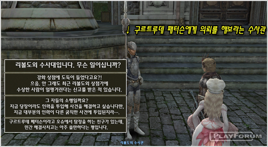 グルトルデが早く捜査官に行って見ようと言って,ミッションは終決されます.捜査官に行って見ましょう.捜査官に仮面捜査官はそのまま平凡なならず者に見えたと解いてくれたと言います.(捜査官当たるの?)