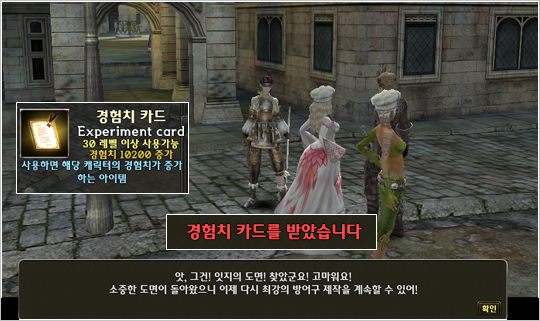 捜した図面をイッジに持って行きましょう.イッジはあまりありがとうと言って 30 レベル経験値カード 3枚を補償で与えるようになります.