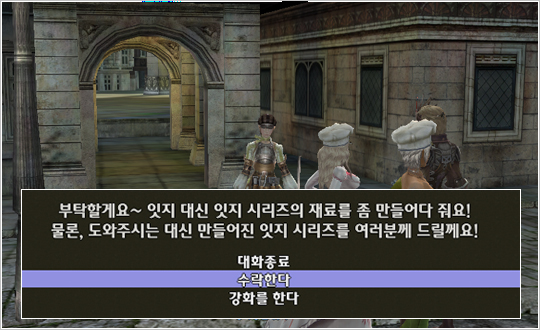 イッジに図面を返した後に今一度言葉をかけて見ればイッジは自分がこの図面を通じて最強の防具を作りたいというのを話してくれます.しかしリボルドウェでさまざまな制約をかけていて自分の研究に進捗がないということを話して自分が必要な物品たちを求めてくれと言ってします.