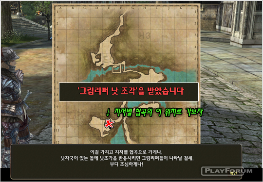 地底ベル峡谷に移動して指導に表示された位置に行って見れば割れたひまのある石が補やこの石をクリックすればミッションが自動発生されるようになります.