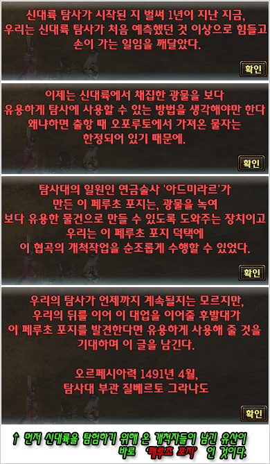 その中で新しくアップデートになったフェルッチオ包紙はフェルッチオ遺産の一部でグラナドエスパダの世の中でただ 3ヶ所であるカタリ瀧,ジザベル峡谷,三姉妹の湖にだけ残っていて,フェルッチオ遺産は後代の開拓者たち(今のグラナドエスパダのプレーヤー)に新大陸へ来て適応しやすいようにしてくれる役目をする古代の遺産たちです.