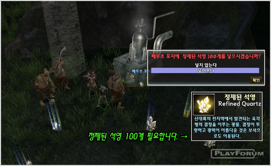 < 精製された石英を通じてアイテムを獲得することができます.>