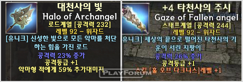 新しいユニークアイテムたちが追加されました.既存に登場していたウラノスの腕輪がレベルが上昇しユニークに様変りしてスキル +1 の効果を持って登場したし,新しく確認されたユニークアイテムの場合はウィザード系列のホールオブアークエンジェル,ゲイズオブフォーリンエンジェルのアイテム 2 種類が新しく登場しました.