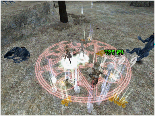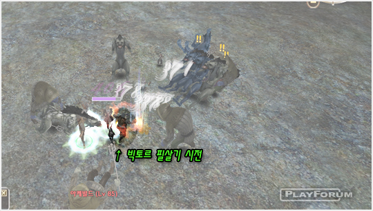 < ビクトールの必殺技..近くに集中したモンスター 8匹が迎える広域スキルだ.>