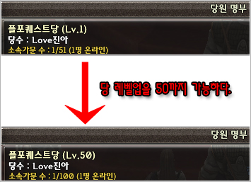 党レベル 50までは副党首を 1人しか任命することができないが 51 以上からは副党首任命がもっと多くなるようになる.51 レベル業のためにはもう一度リンドンを捜して本格的な党レベル業のためのクエストを遂行しなければならない.