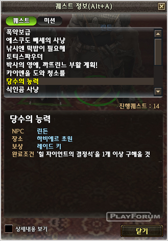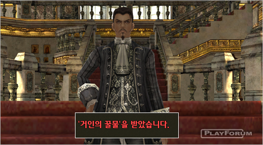リンドンは党首になった君に党首としての能力を証明するためのクエストを付与します.そのクエストのために巨人の花蜜の水というクエストアイテムを支給して,それを持ってハビエル草原に行ってグレートヒルジャイアントを呼び出して党員たちと力を合して片付けなさいというクエストを付与する.