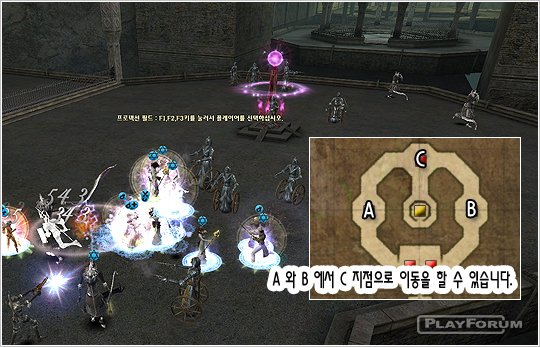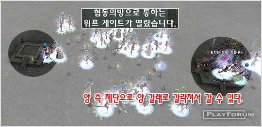 ワープゲートが開かれたら中央に移動ができるようになる.中央にはボスモンスターである Dr.フランモールステインまで一緒に出るようになるので気を付けるようにしよう.敵ホームが見えるのにそれを壊せば一歩遅れてワープゲートに乗って来るユーザー達が来ることができなくなるので敵ホームを破らないようにしよう.