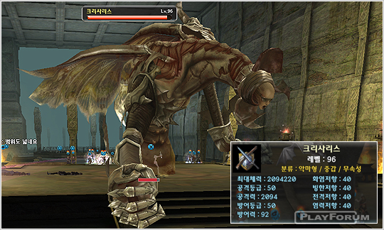 最終ボスで出るクリサリスは非常に雄大壮厳であり,ダメージも莫強する.体力が 200万が過ぎるモンスターなので多くのユーザーの合同が必要だ.クリサリスは中毒,凍氷,恐怖,感電,アポカルリブスなどの状態以上が皆かかるようになるので状態以上をかけながら取った方が良い.