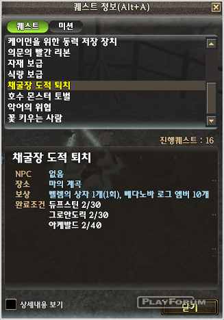 党戦で非常に重要な役目をするようになったモンスターアンバーを 10個ずつ与えるクエストがデビルバレーにも生成になりました.この採掘場盗賊退治クエストはまた初めて補償でベレムの箱を与えるクエストです.