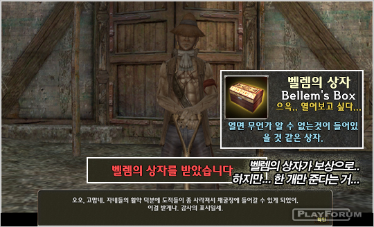 多くの数のモンスターたちがリポップするのでクエスト進行を非常に早くできます.クエストを完了したら今一度採掘場作業員に会いに行くようにします.初クエスト補償でベルレムの箱 1個を与えるようになります.(補償とてもしょっぱいです.-_-)