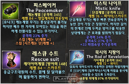 デビルバレーでクエストを進行しながら得たアイテムたちです.多様なレベル帯のアイテムは勿論で既存のアイテムたちも出ながらかなりややしお辛い(?) 収益をあげることができました.