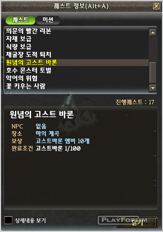 このクエストも繰り返し遂行が可能なクエストとして狩りをしながら一緒に遂行すれば役に立ちそうなクエストです.またデビルバレーではこのクエストと同時に遂行することができる怨念のゴーストバロンクエストを一緒に受けることができるので狩りもしながらクエストも多数進行する一石二鳥効果も享受することができます.