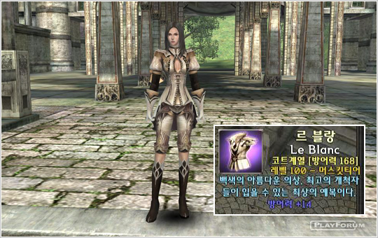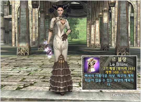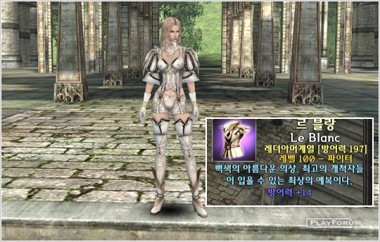 ルブランシリーズは華麗な白色衣装と100レベルユーザー達のコスチュームと似合うに値する防御力を取り揃えているし,その着用姿も非常に派手ながらも美しいです.