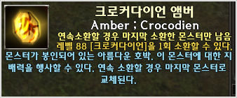 補償は 88 レベルクロコダイルアンバー 10個でした.クロコダイルアンバーの場合クロコダイルの移動速度が早くて攻撃力も高いモンスターなのでレベル上げを一緒にするための召還アンバーとして脚光を浴びるでしょう.
