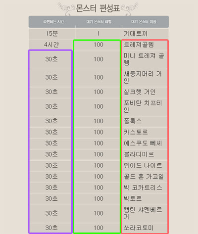 戦闘地域のボスであるトレジャーゴ-レムはスロトリは瞬間から 4時間後に登場します.こちらに登場するモンスターたちと同じく攻撃力はほとんどないが元々の体力である 528のみを持っています.