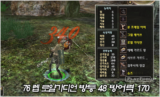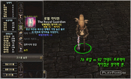 44 レベルの防御等級 +1 この付いているカイトシールドと 76 レベルの何のオプションが付かないロイヤルガーディアンを持ってモンスターを相手でモンスターに着るダメージ比較をして見ました.実験はこのごろ盛んに良い狩り場に浮び上がったウスティウル 3区域に存在するエリップマブを相手で実験をして見ました.