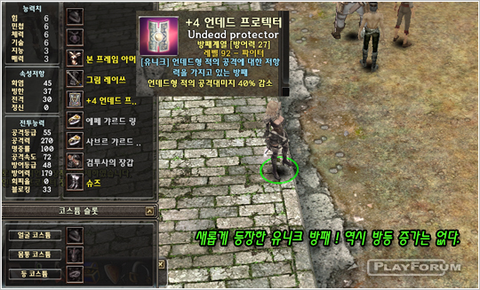 上実験で 44 レベル盾と 76 レベル盾比較実験で防御等級+1 この付いているあのレベル盾が非常に優秀なダメージ減少能力を見せた.レベルに比例する適正な狩り場で狩りをしたら防御等級がどうして重要になるかどうかを見せてくれる書き入れ時だ.